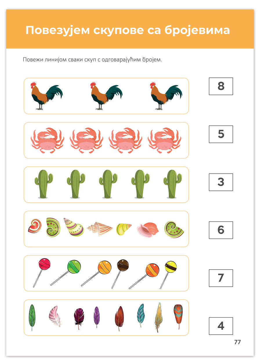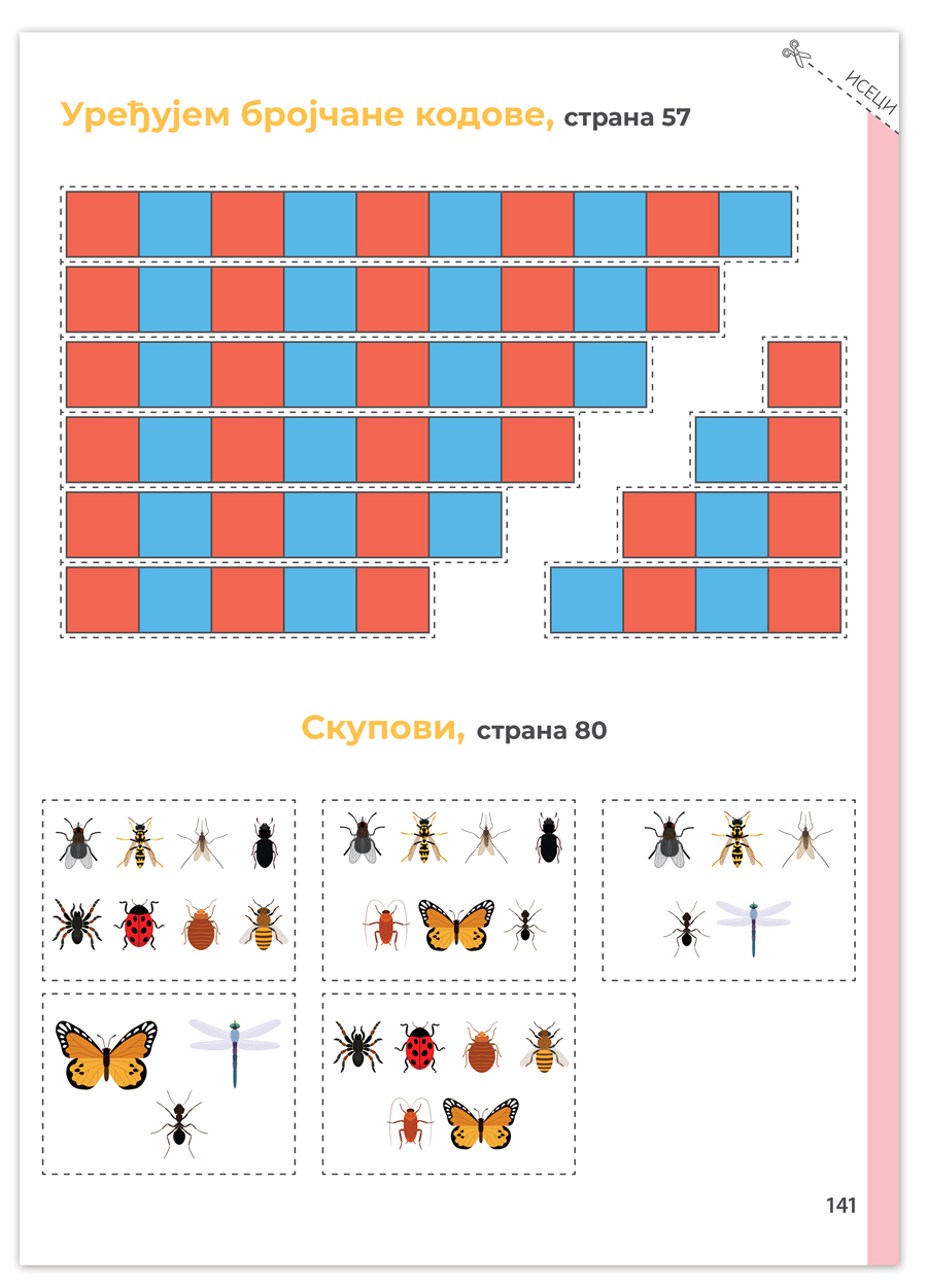 Kako bi realizovalo brojne aktivnosti na putu učenja geometrije, otkrivanja brojeva i računanja, dete će koristiti Montesori materijal koji je priložen na kraju radne sveske.