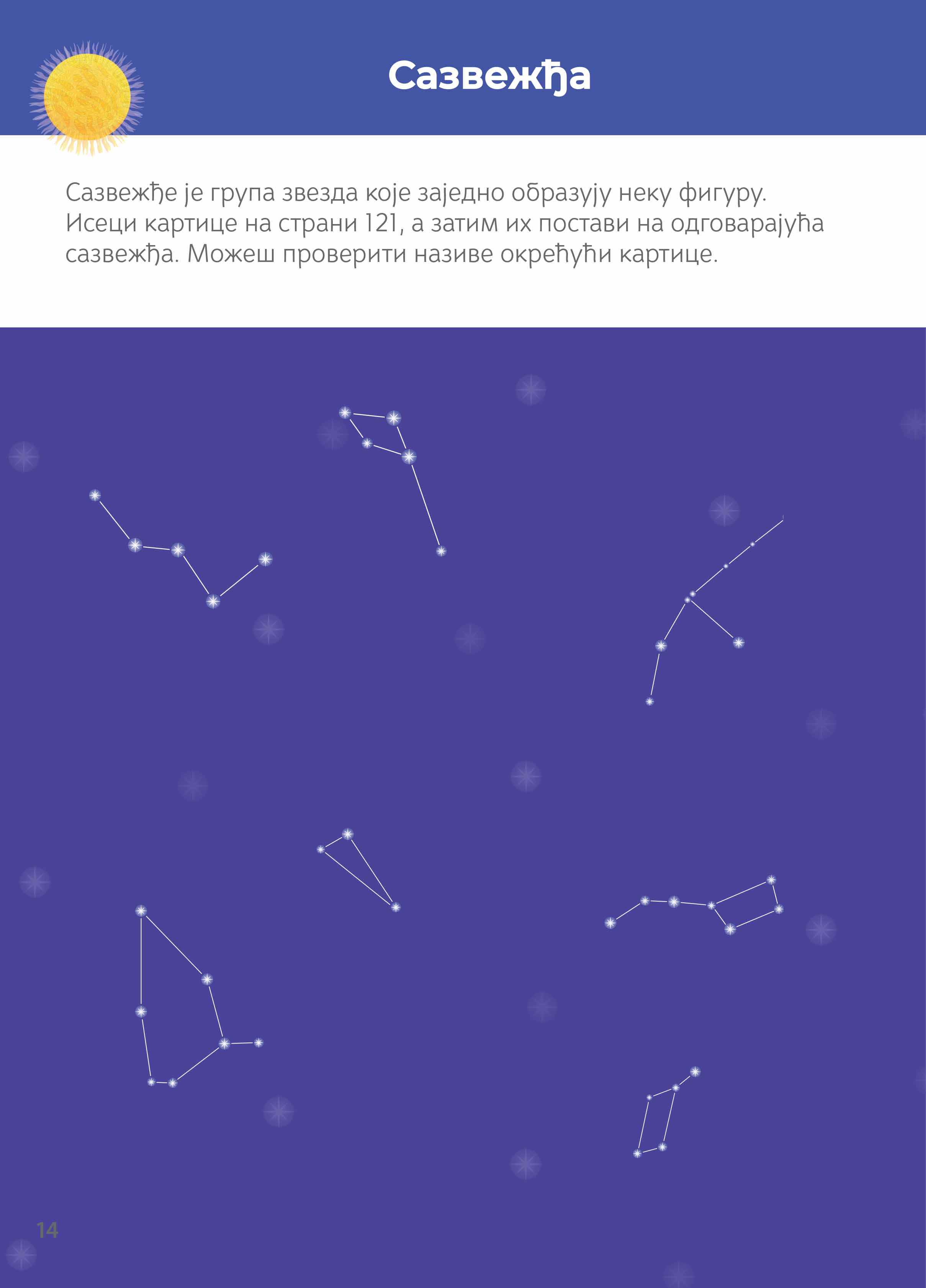 *Na kraju svakog poglavlja, nalaze se kartice koje ćete iseći i sačuvati. Ovaj kurs sadrži 20 slikovnica sa po 9 karata koje su u vezi sa temama iz svakodnevnog života: porodica, odeća, telo, hrana, dani u nedelji, godišnja doba, itd. Svaka kartica ima sliku na prednjoj strani, a na poleđini reč napisanu na egleskom i prevod na srpski jezik.