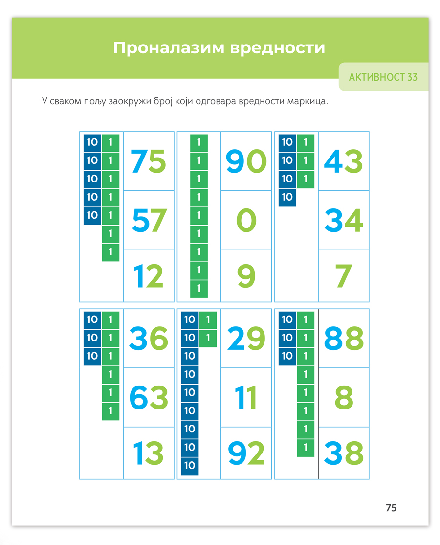 - kartice sa simbolima za postepeno učenje brojeva do 99 ;
