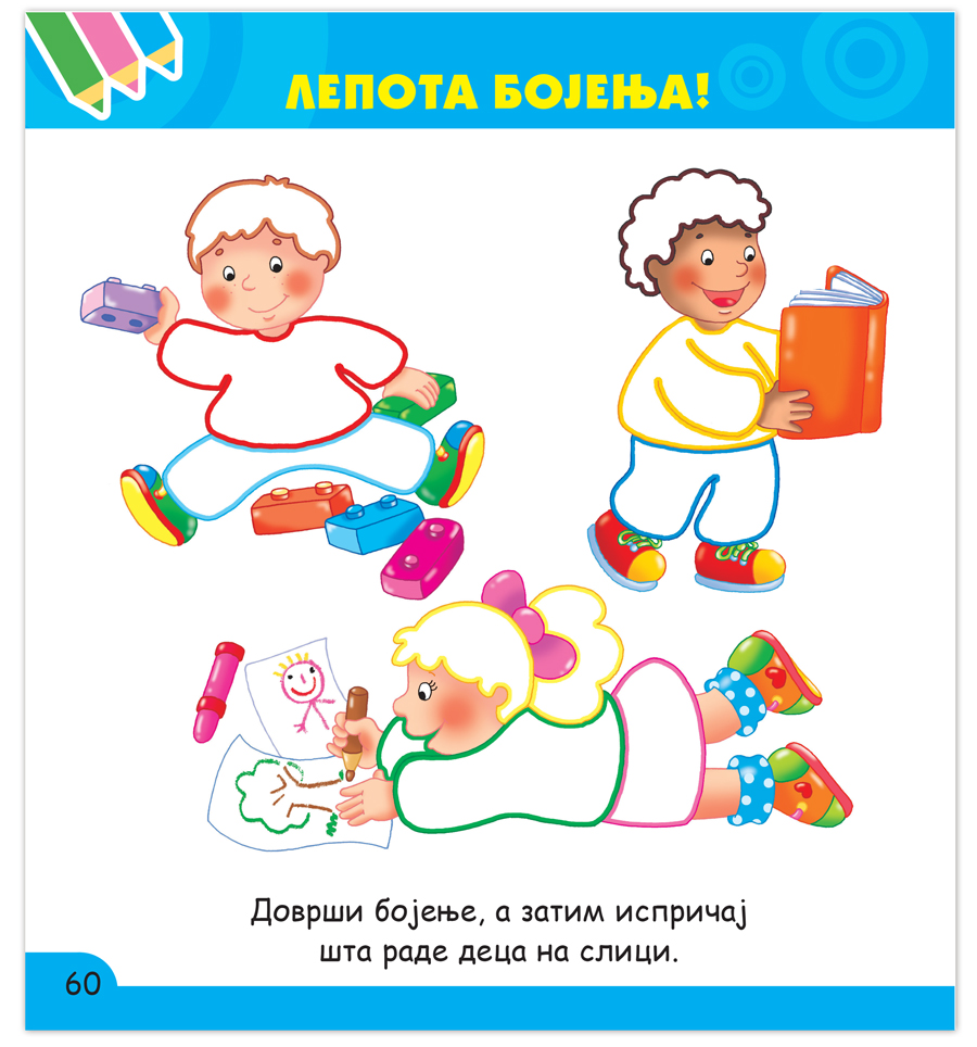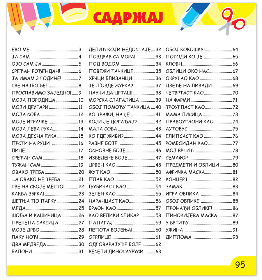 Radna sveska pred vama sadrži mnoštvo aktivnosti koje će podstaći dete da logički razmišlja i razvije fine grafomotoričke veštine. Dete će povezivati linije, tražiti sličnosti i razlike, učiti boje i oblike, rešavati jednostavne lavirinte i još mnogo toga.