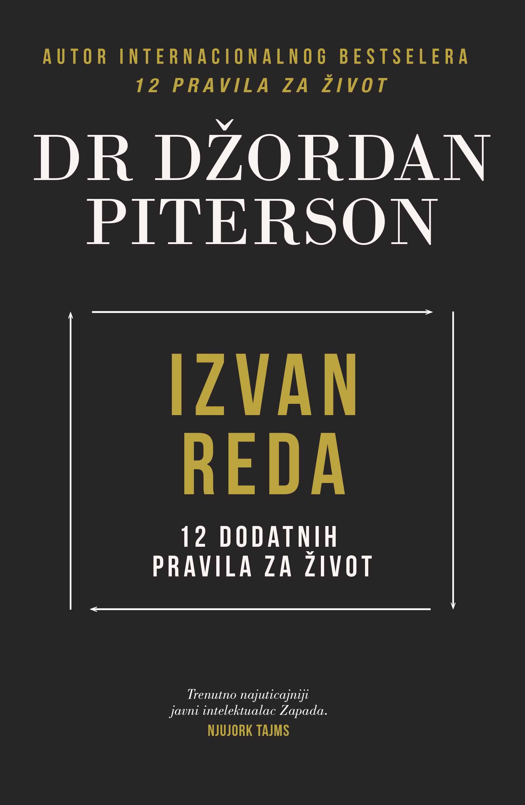 U doba kada ljudska volja pokušava da se nametne u svakoj sferi života – od naših društvenih struktura do naših emocionalnih stanja – Piterson nas upozorava da je preterana sigurnost zapravo opasna. Pored toga, nudi nam strategije za prevazilaženje kulturnih, naučnih i psiholoških sila koje nas guraju ka tiraniji, i uči nas kako da se oslonimo na svoje instinkte da bismo pronašli smisao i svrhu čak i kada se osećamo bespomoćno. Dok nam prekomerni haos preti nestabilnošću i strepnjom, prekomerni red nas može paralisati i dovesti u stanje potpune potčinjenosti. Knjiga Izvan reda govori o tome koliko je važno da se uspostavi ravnoteža između ova dva temeljna principa stvarnosti i vodi nas pravom i uskom stazom do njihove razmeđe.