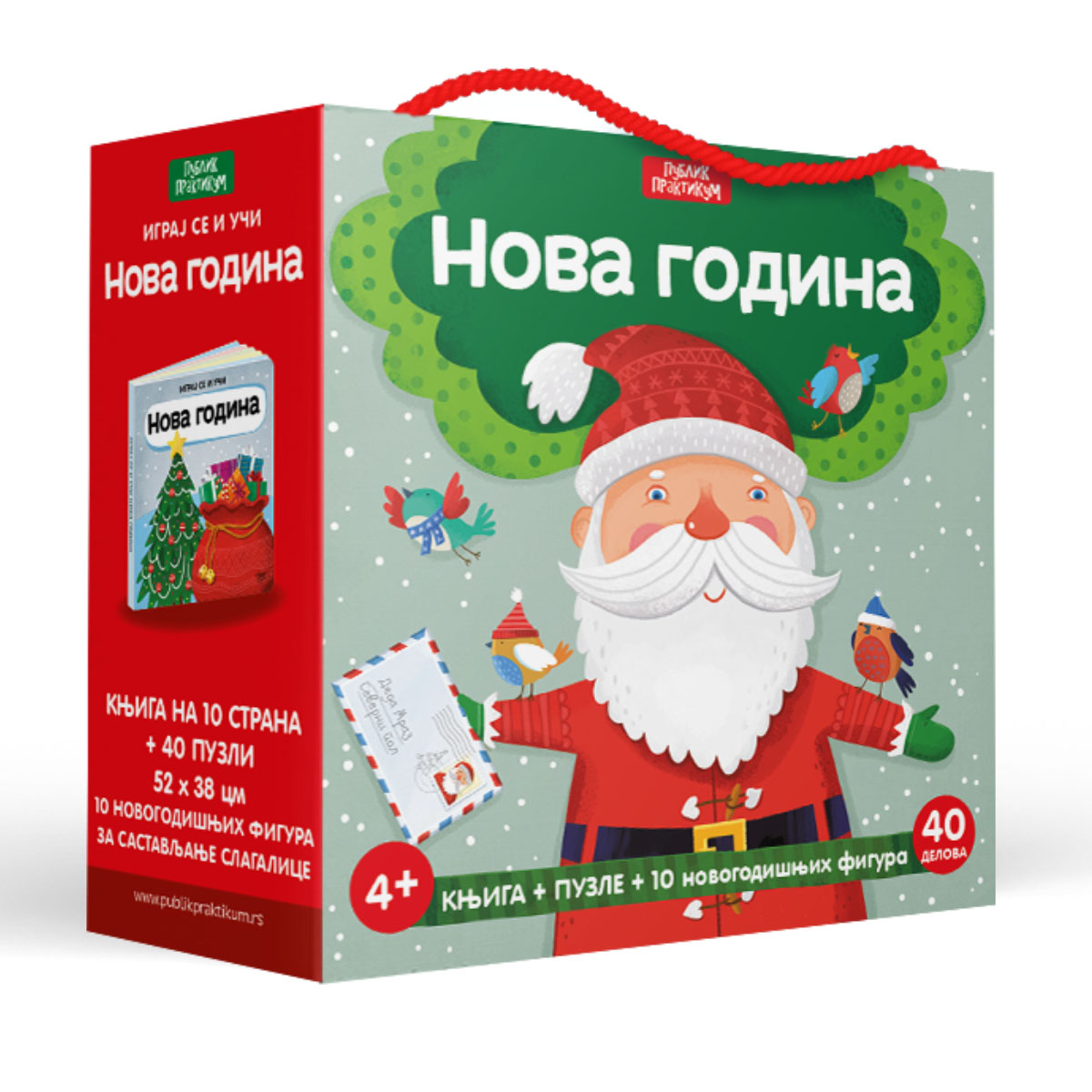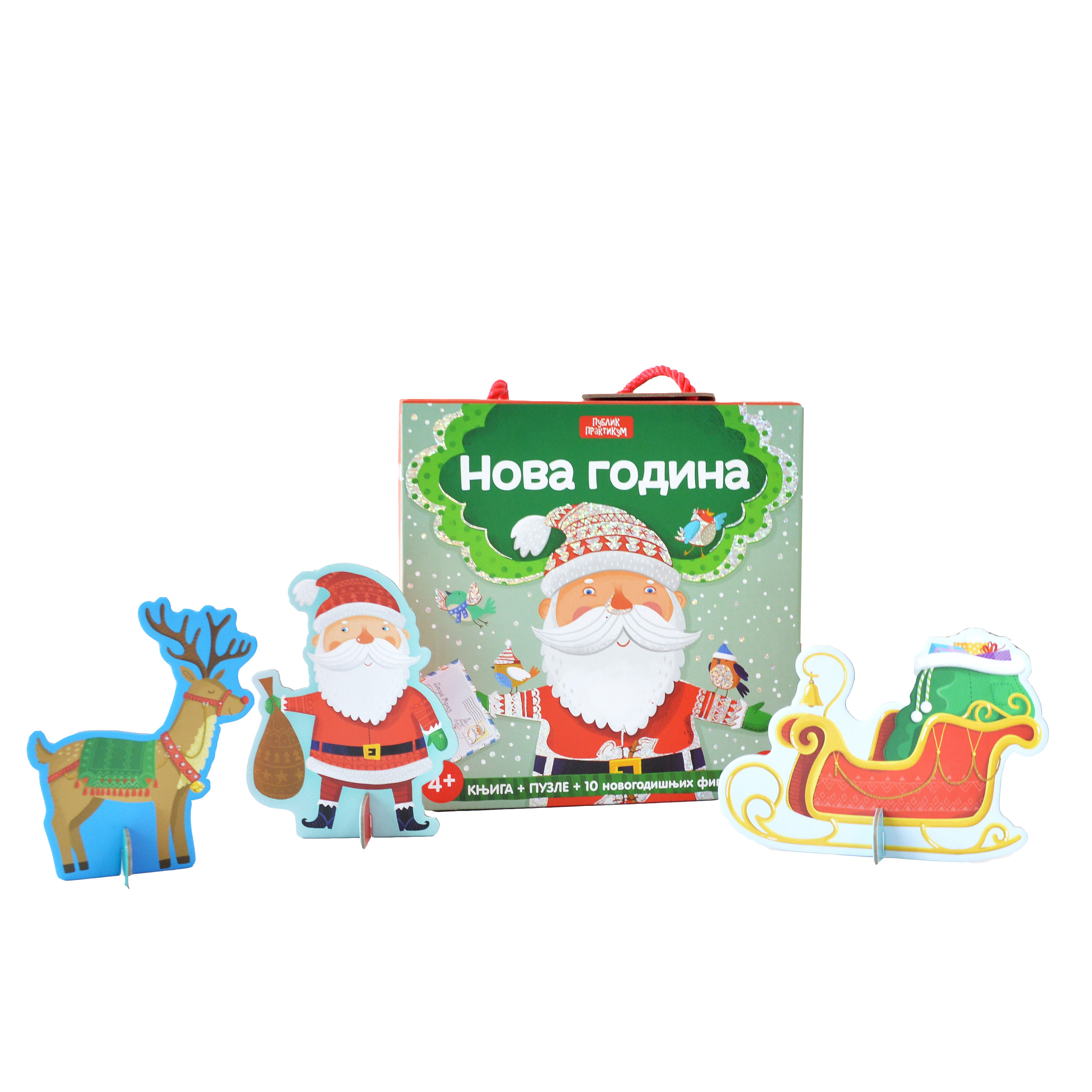 Kutija puna zabave i učenja, sadrži knjižicu od 10 strana, slagalicu od 40 delova i 10 božićnih figurica koje možete sastaviti.