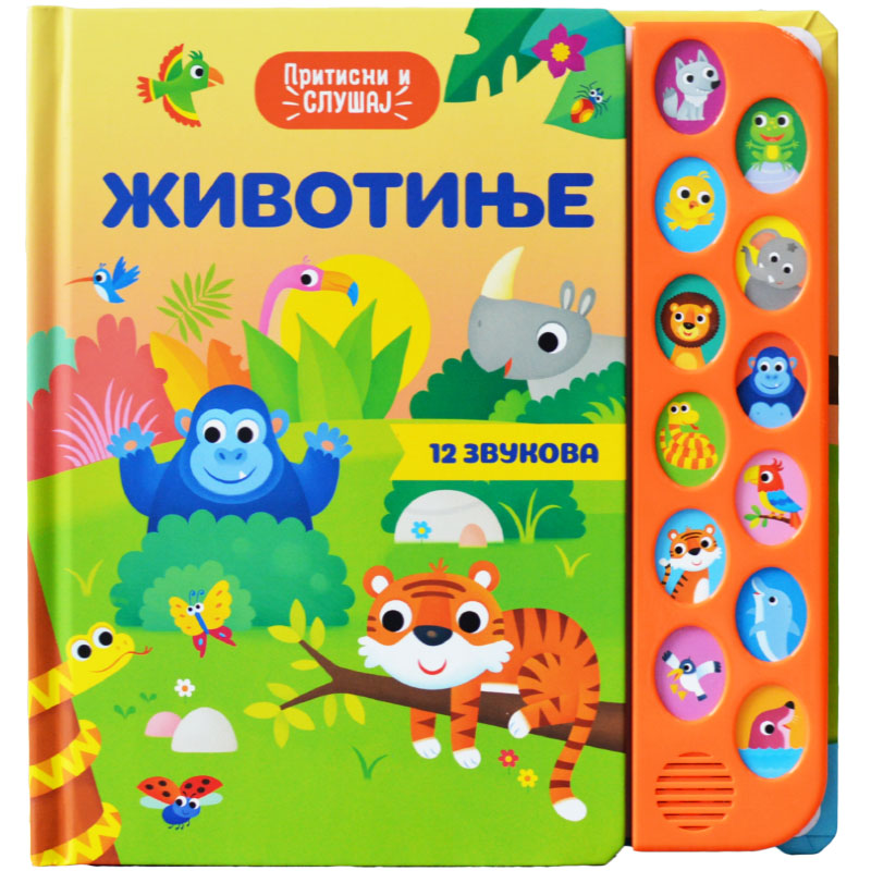 Uz 12 pravih zvukova životinja – od rike lava i trube slona, do pesme papagaja i šapata zmije – ova knjiga pretvara čitanje u pravu pustolovinu.