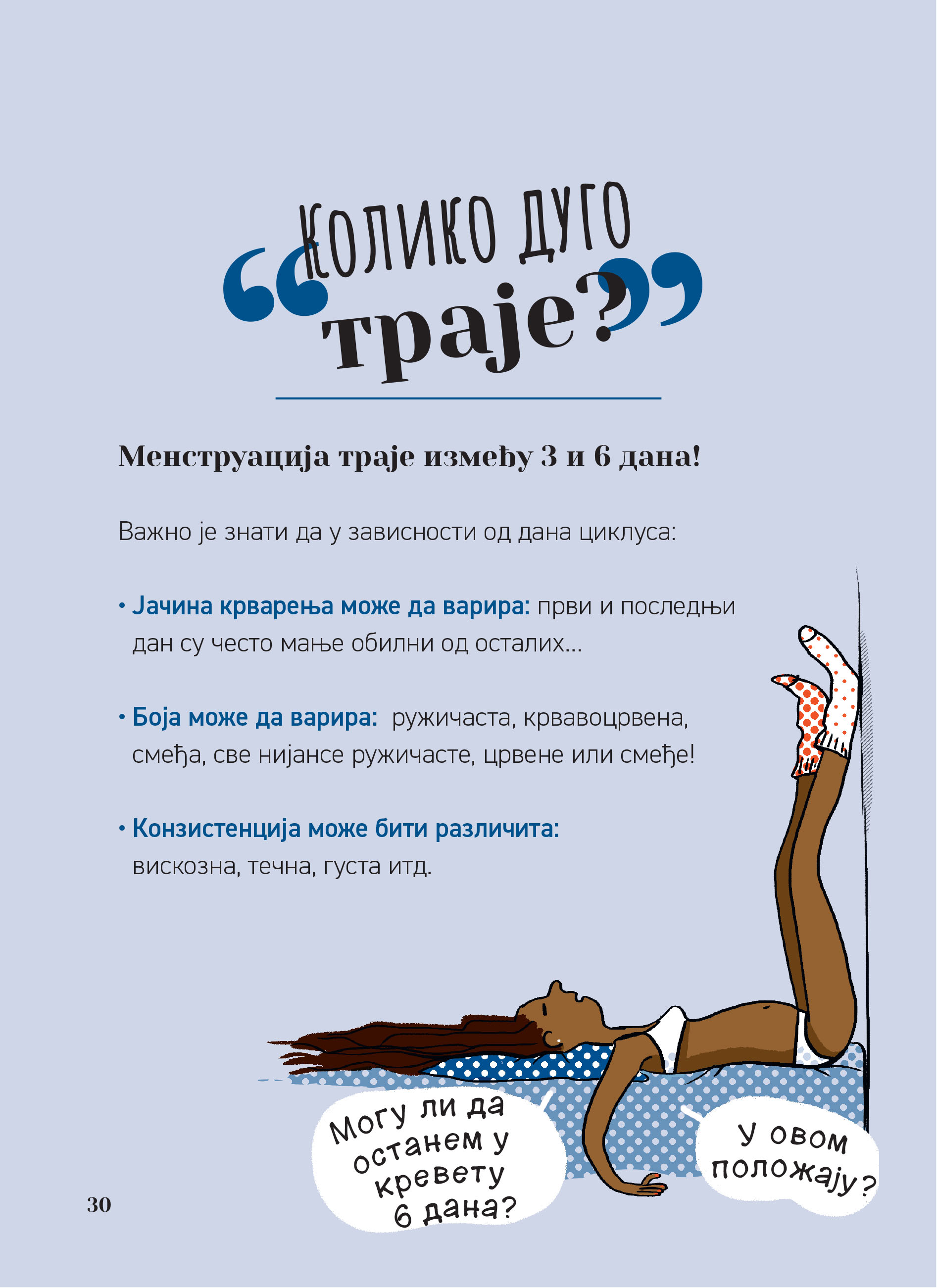 Ova knjiga je osmišljena da odgovori na sva pitanja koja mlade devojke, žene, ali i dečaci i muškarci mogu imati jer je mensturacija društveno pitanje. Nije tabu imati menstruaciju!