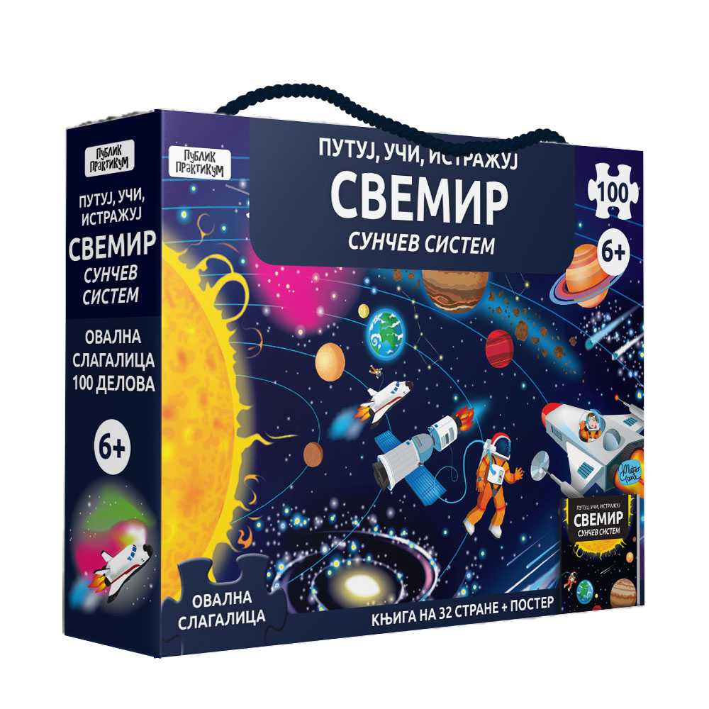 Ovaj zabavni i edukativni set vodi te na uzbudljivo putovanje kroz svemir, otkriva od čega se sastoji Sunčev sistem, šta su planete, zvezde, meteori i priča ti o istoriji istraživanja svemira.