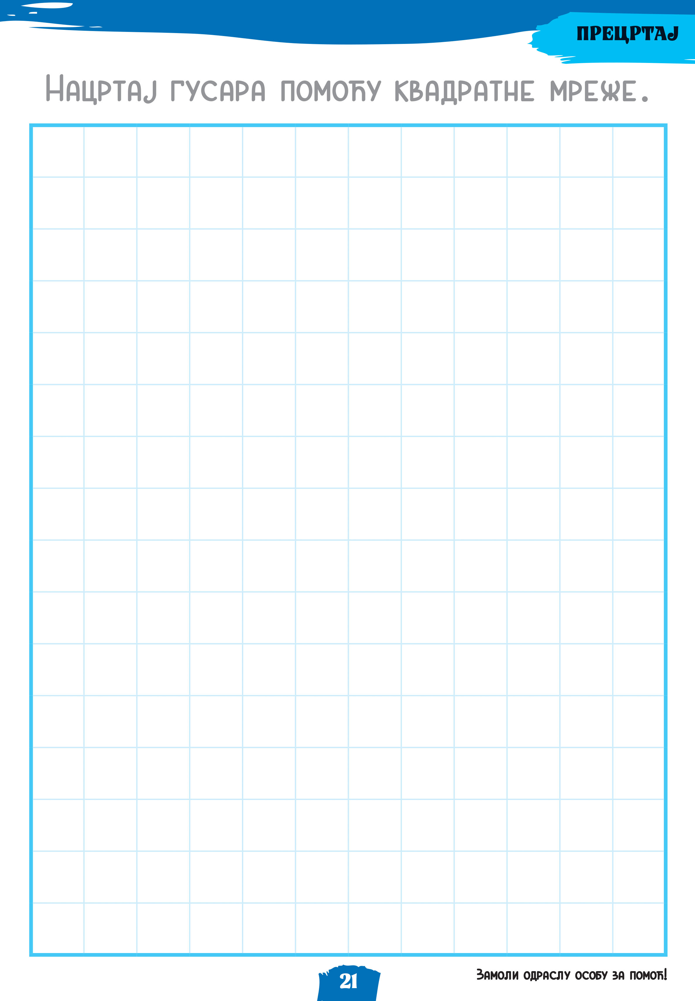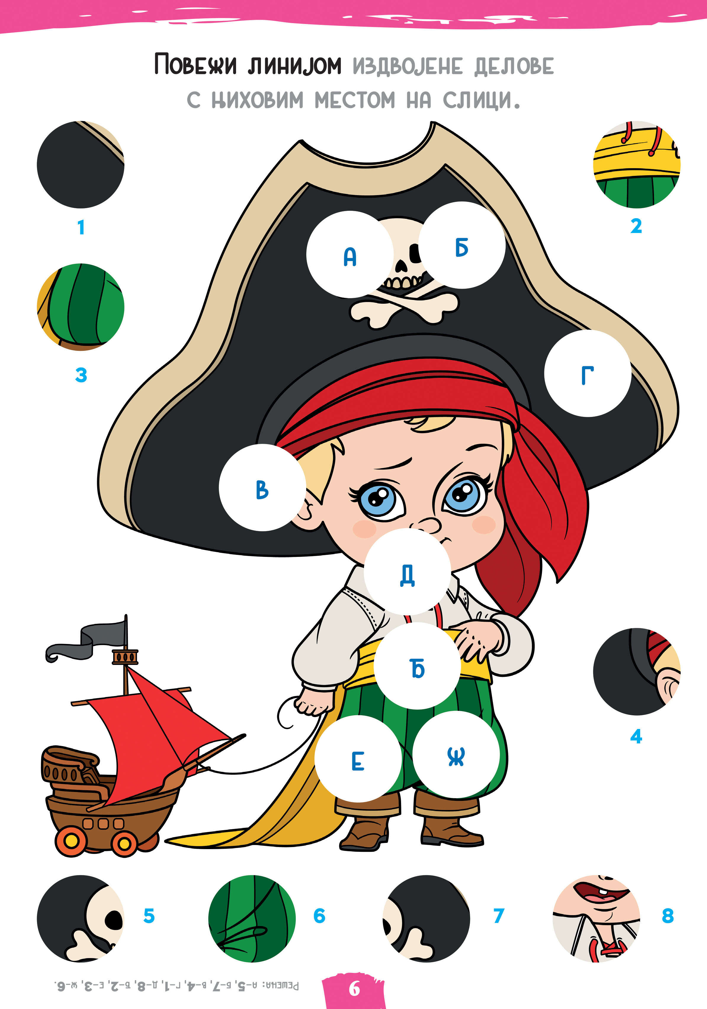 Imaće priliku da oboje crteže po sopstvenoj želji, povežu izdvojene delove, dovrše slike i na kraju, uz pomoć kvadratne mreže, sami nacrtaju opasnog gusara.